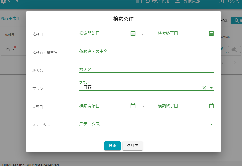 右上にあるより一覧葬儀データの絞り込み条件を設定できます.